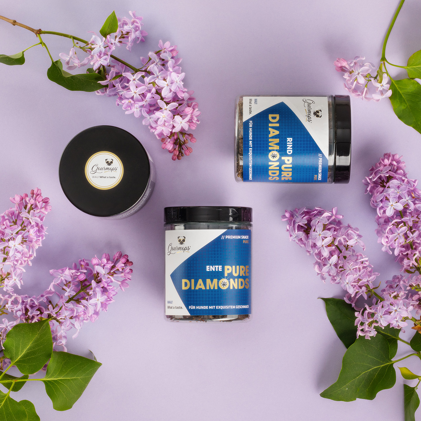 100 % purer Genuss. Unsere PURE DIAMONDS sind schonend luftgetrocknete Premium-Snacks aus hochwertigem Fleisch. Sie enthalten keine künstlichen Zusatzstoffe, sind getreidefrei und erhältlich in verschiedenen köstlichen Sorten. Verwöhne deinen Hund mit natürlichen Snacks, die für gesunde Belohnungen sorgen!